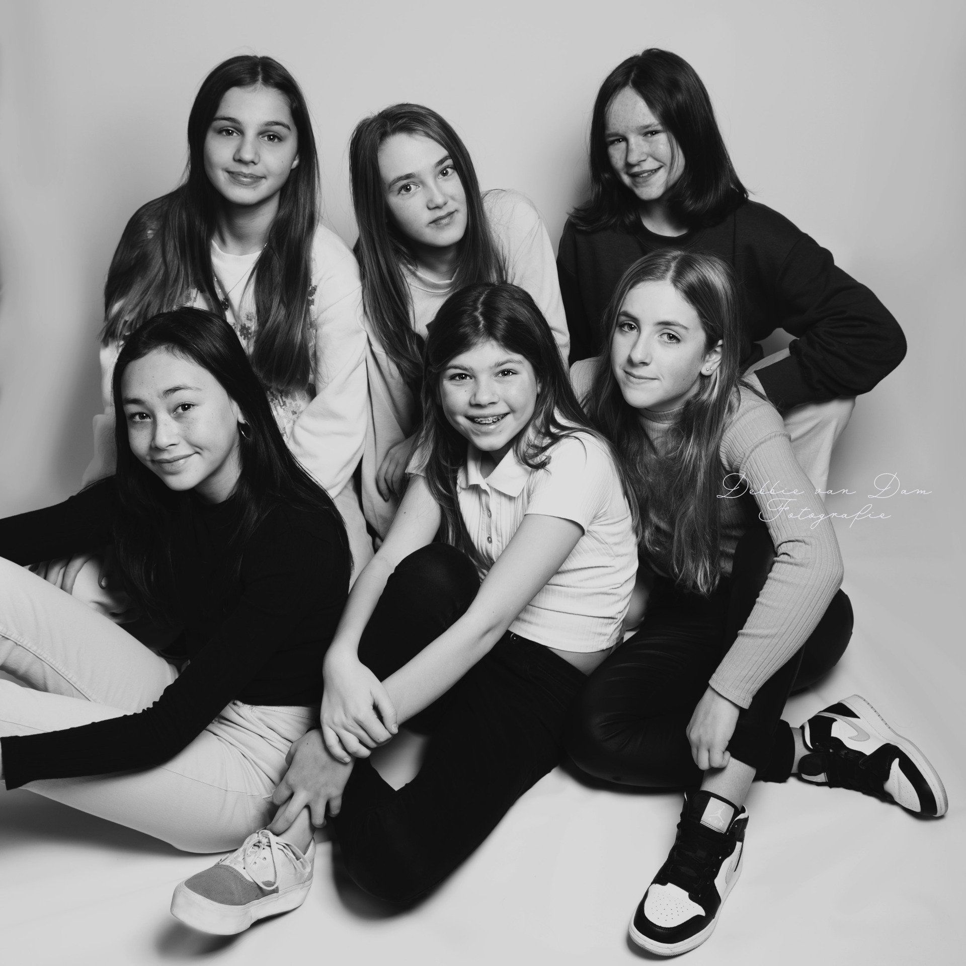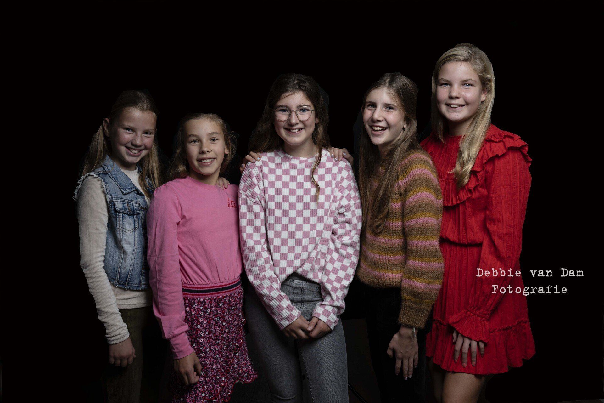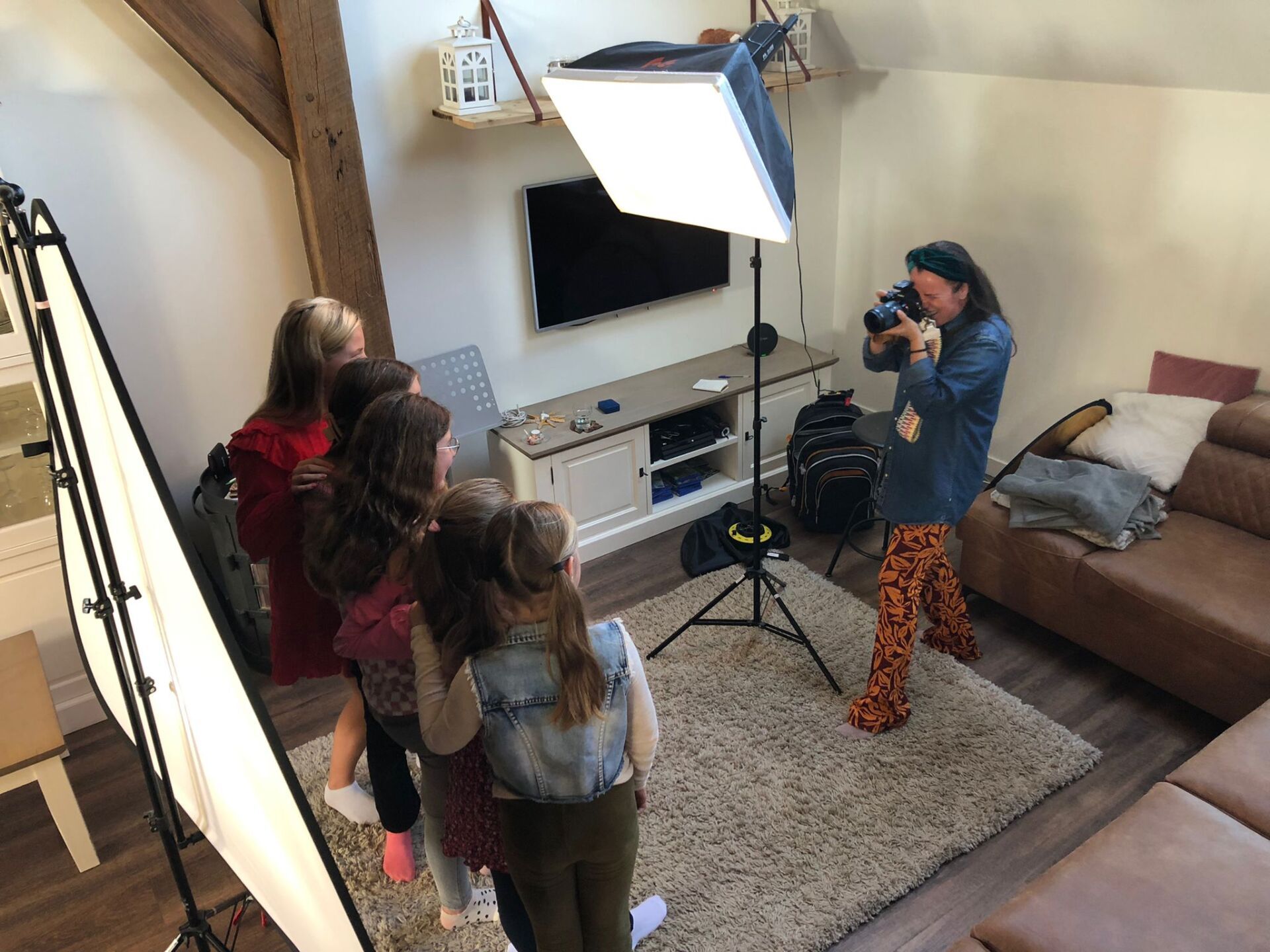 Ik kom bij jullie thuis en bouw een echte fotostudio. Daar maken we van iedereen apart een mooie portret foto. Daarnaast gaan jullie met elkaar nog op de foto. Je houdt er een mooie herinnering aan over en leuke foto’s om te versturen naar jouw vrienden en vriendinnen na afloop van het feestje! Er zijn eventueel ook pasfoto’s te bestellen of ander drukwerk van de gemaakte foto’s.