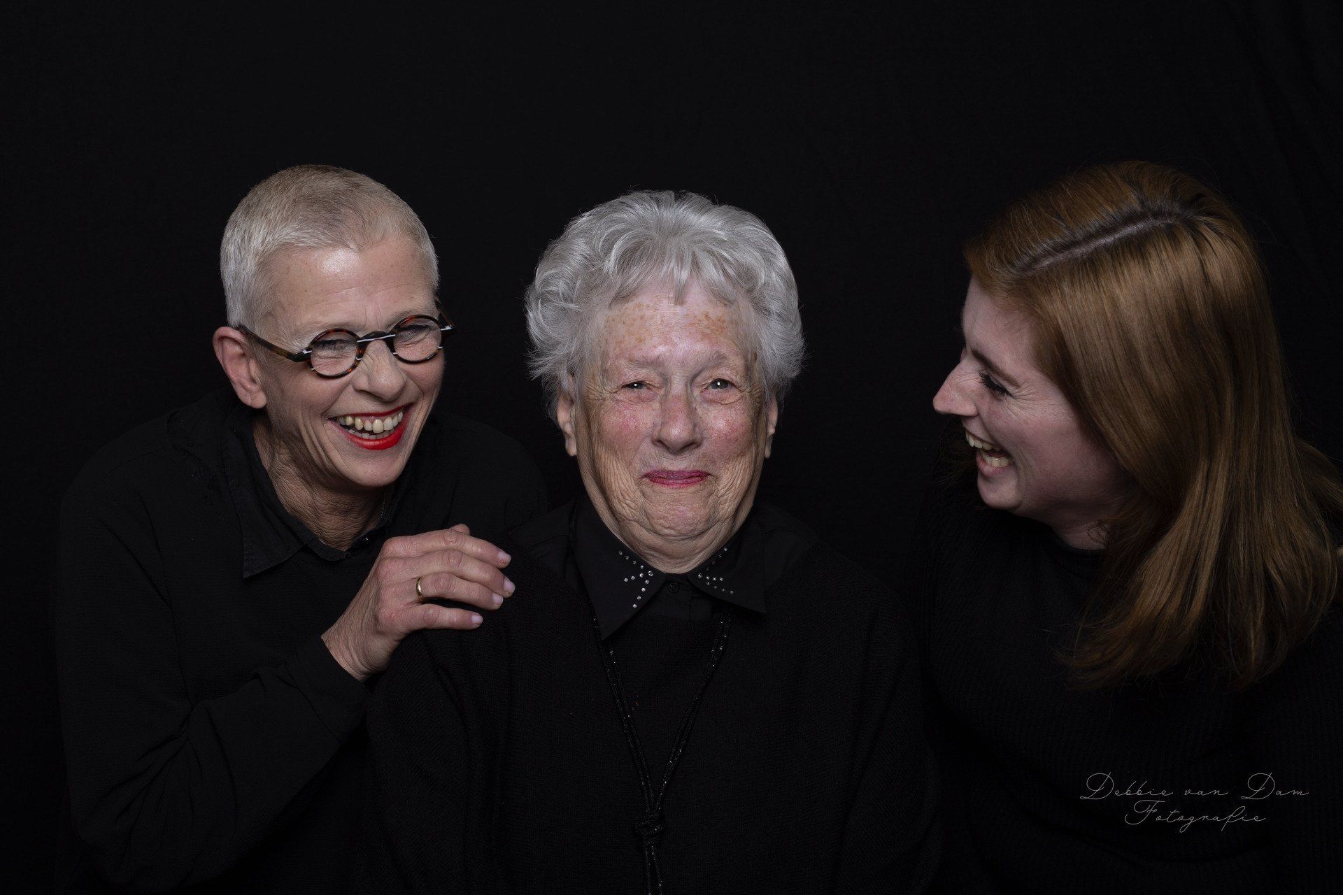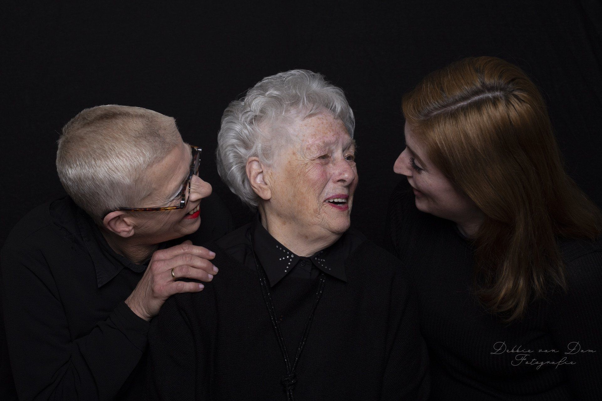 Deze mooie serie is gemaakt aan huis, waar ik met mijn mobiele studio naartoe kom. Ik zorg voor een ontspannen sfeer en neem de tijd. Ook het generatie portret hieronder is gemaakt aan huis. Heel fijn als iemand niet de mobiliteit heeft naar mijn studio te komen. Ik kom met liefde naar jullie toe en leg jullie op jullie mooist vast, precies zoals je bent!